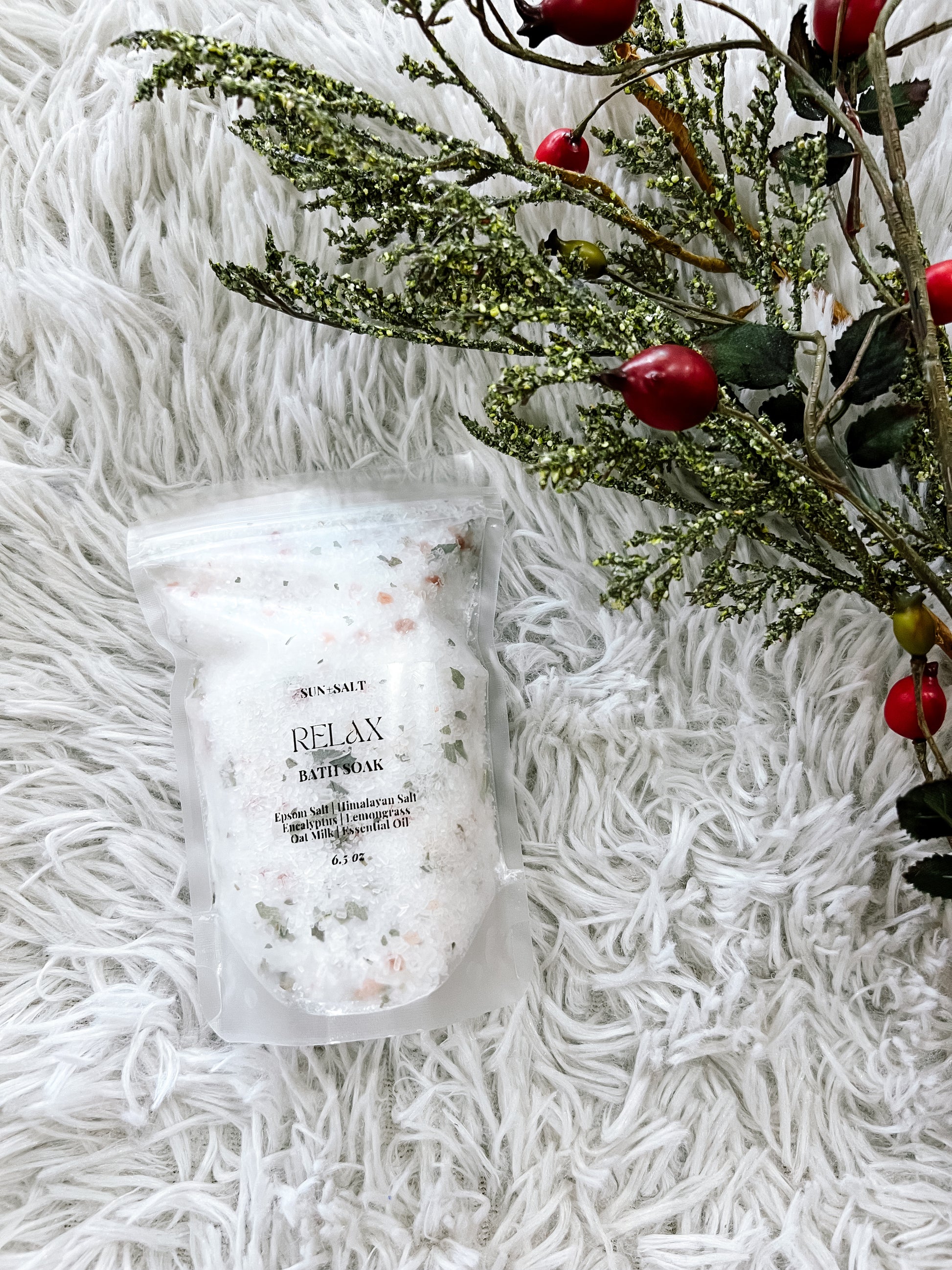 Relax Bath Soak - Epsom Salt- Himalayan Salt- Oat Milk- Lavender- Lemongrass - Eucalyptus-Essential Oil Blend