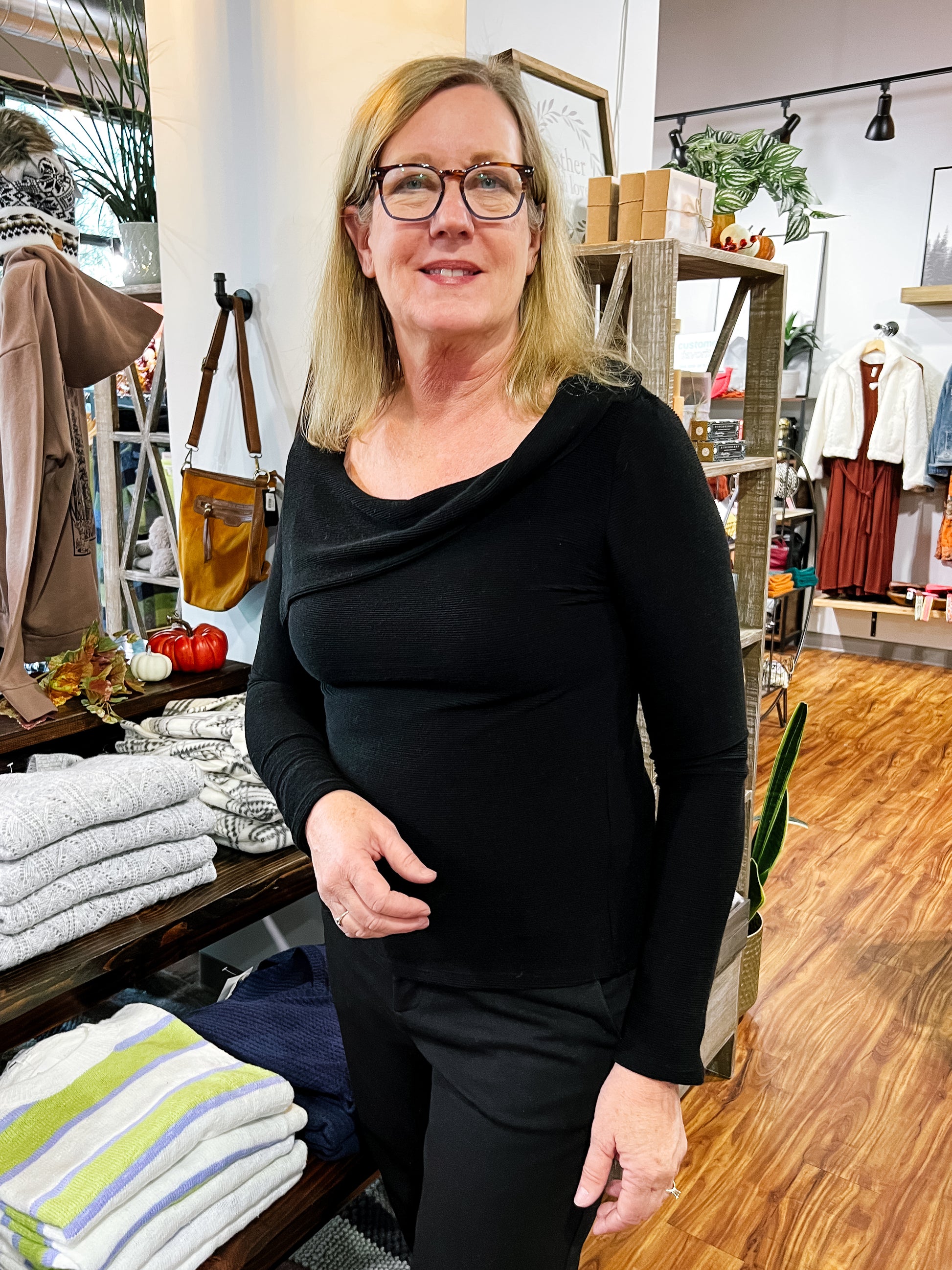 Product Description: A chic staple with a touch of effortless charm — this black semi off-the-shoulder top features a lightweight knit with fine ribbing for a flattering fit. The soft, silky feel makes it perfect for day-to-night wear, while the subtle neckline adds just the right amount of style. Pair it with jeans for a casual look or dress it up with a skirt and heels for an evening out.