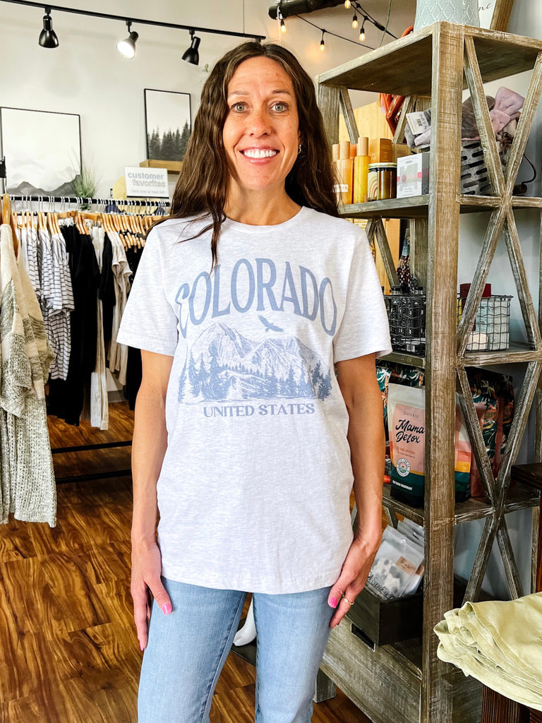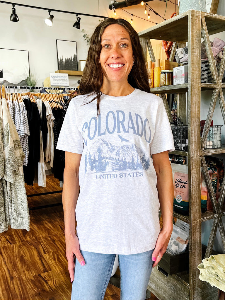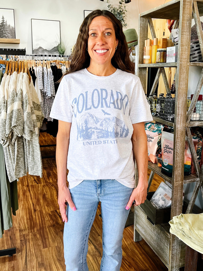 Product Description: This light gray t-shirt showcases a minimalist Colorado and mountain graphic, perfect for nature lovers and adventure seekers. With its soft fabric and easy fit, it’s great for everyday wear—whether you're hitting the trails or relaxing at home. Fits true to size.