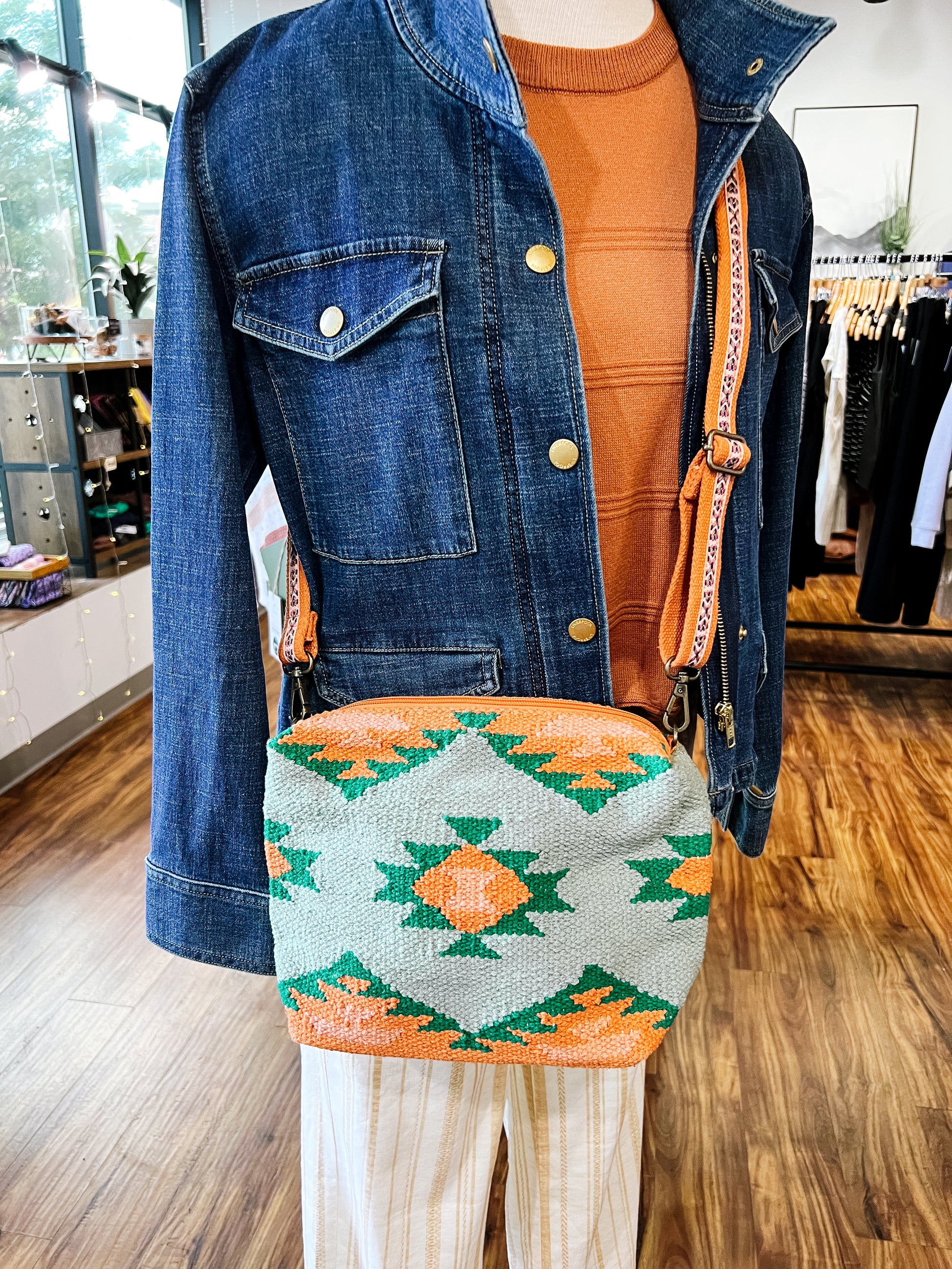 Green, Orange, Pink Aztec Crossbody