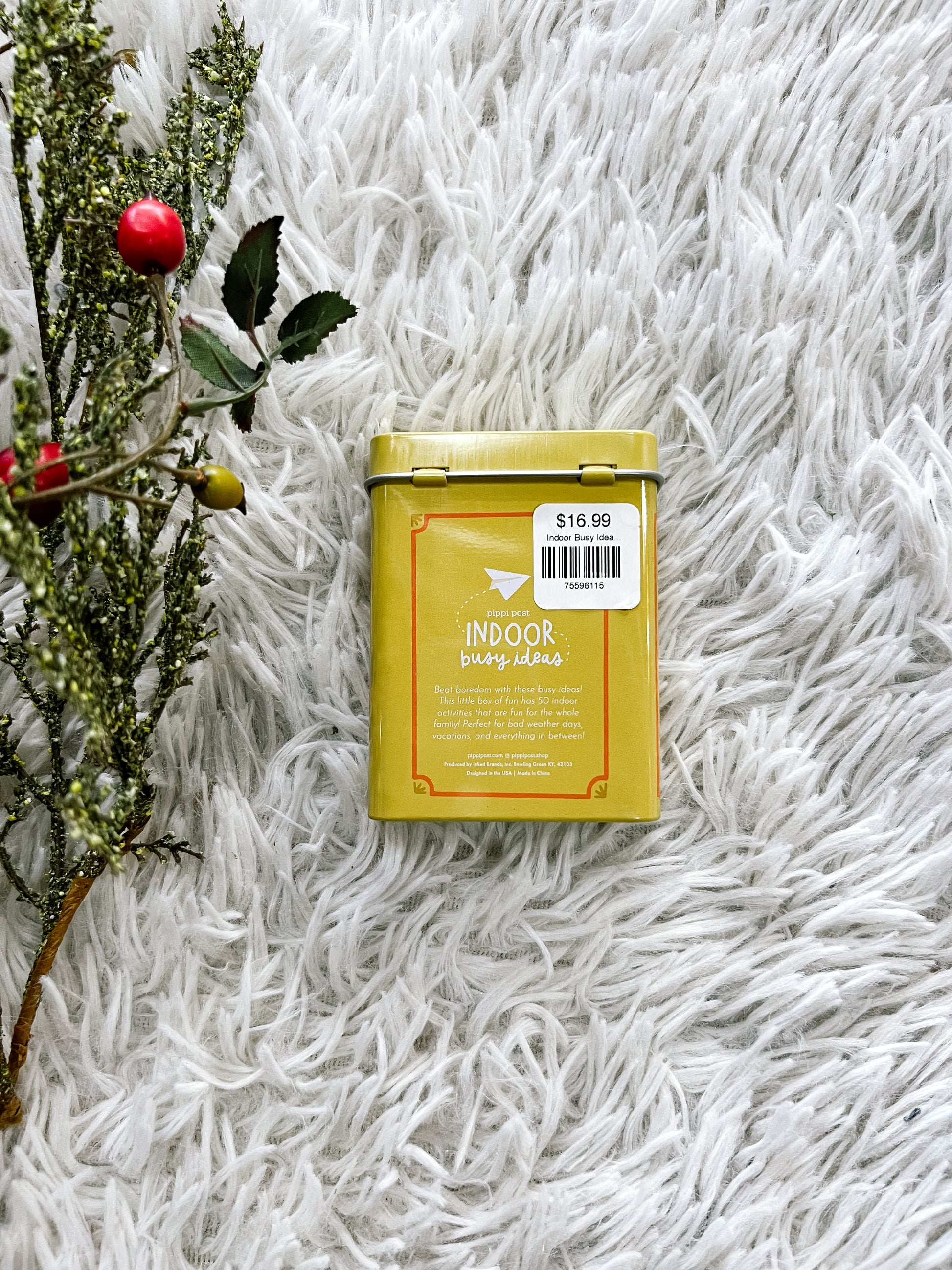 Product Description: Beat boredom with the Indoor Busy Ideas Cards! This fun and engaging set includes 50 creative activity ideas to keep kids entertained on rainy days, vacations, or anytime they need a screen-free break. Packed in a charming tin, it’s perfect for family fun, classrooms, or gifting to parents and caregivers. A must-have for turning indoor days into adventure-filled moments!