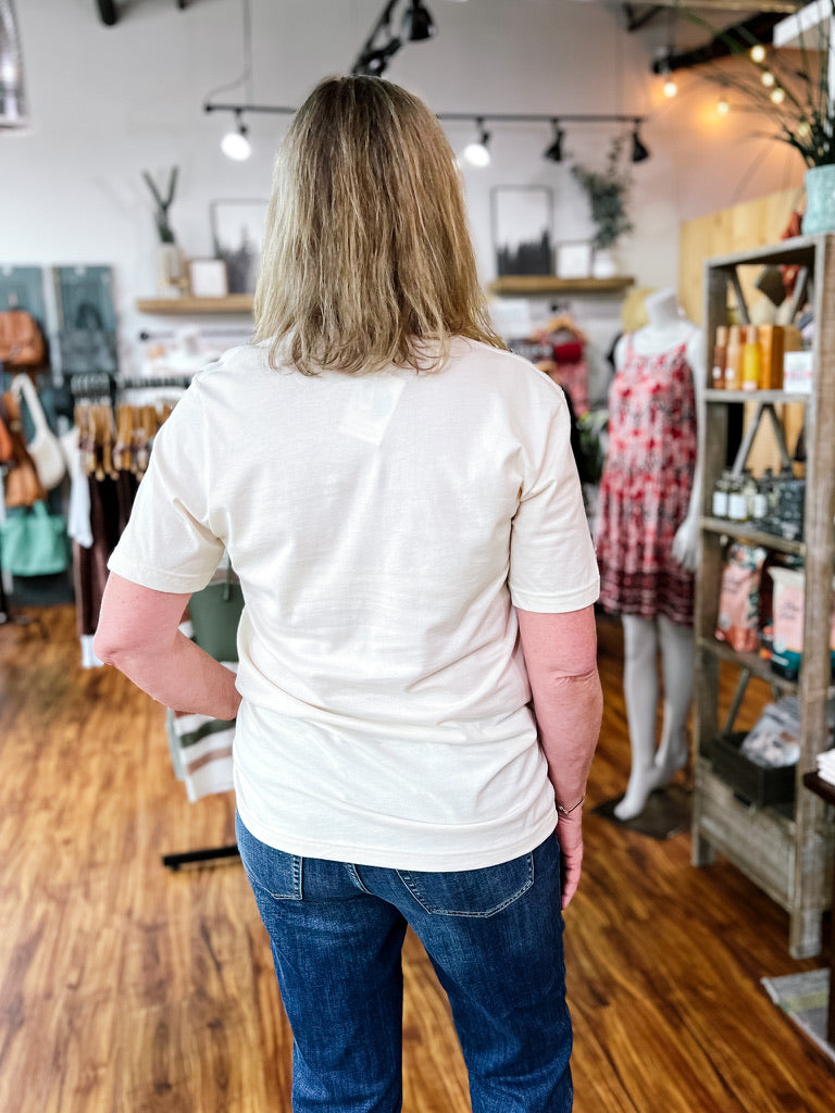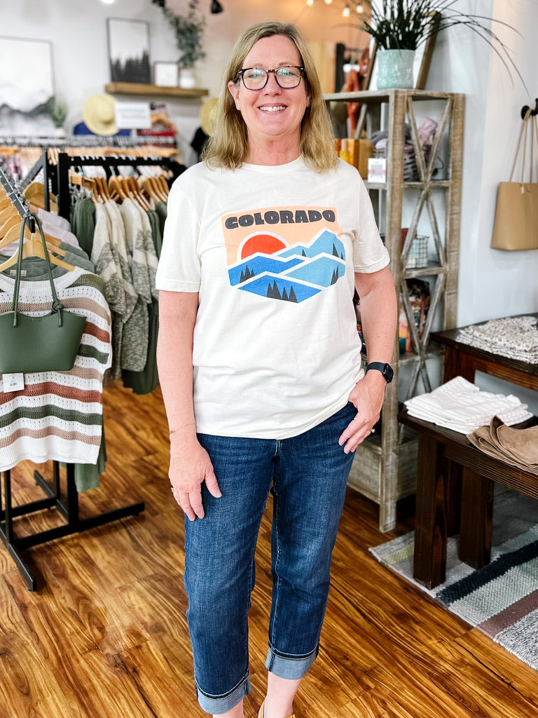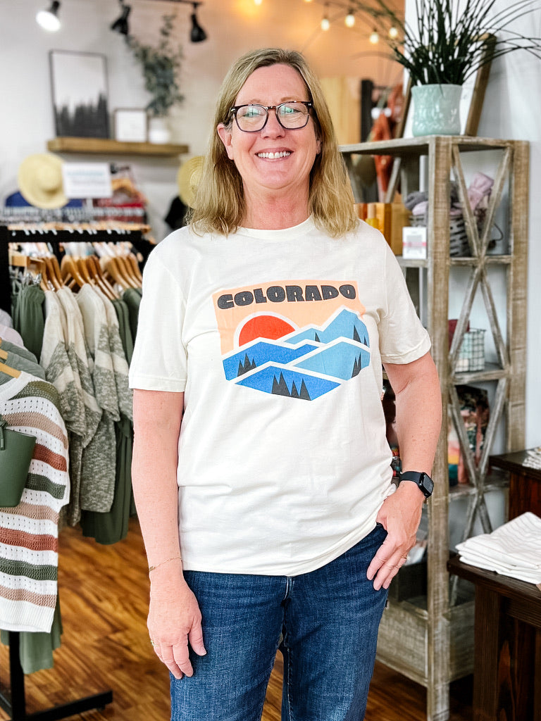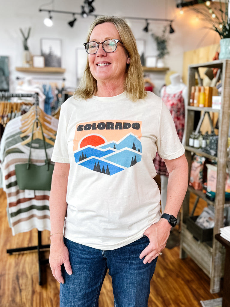 Product Description: This natural-colored short sleeve tee features a minimalist Colorado mountain logo for an effortlessly cool, outdoorsy look. Soft, breathable, and easy to style, it’s a go-to for casual days and mountain getaways alike. Fits true to size.