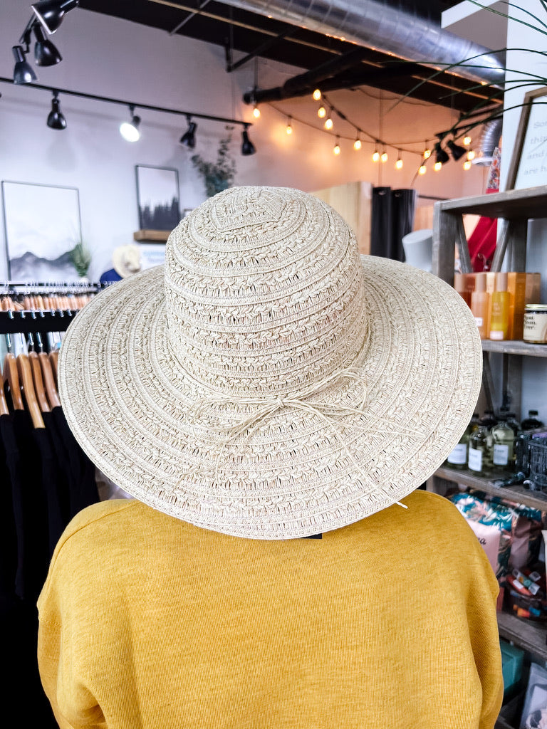 Product Description: This natural UPF 50+ large brim straw hat is a breezy essential for sunny days. It features a unique raffia stitching design and a charming raffia tie around the rim for added texture and style. The floppy silhouette adds effortless flair, while the adjustable head sizer ensures a comfortable and secure fit. Perfect for beach days, garden strolls, or outdoor gatherings.