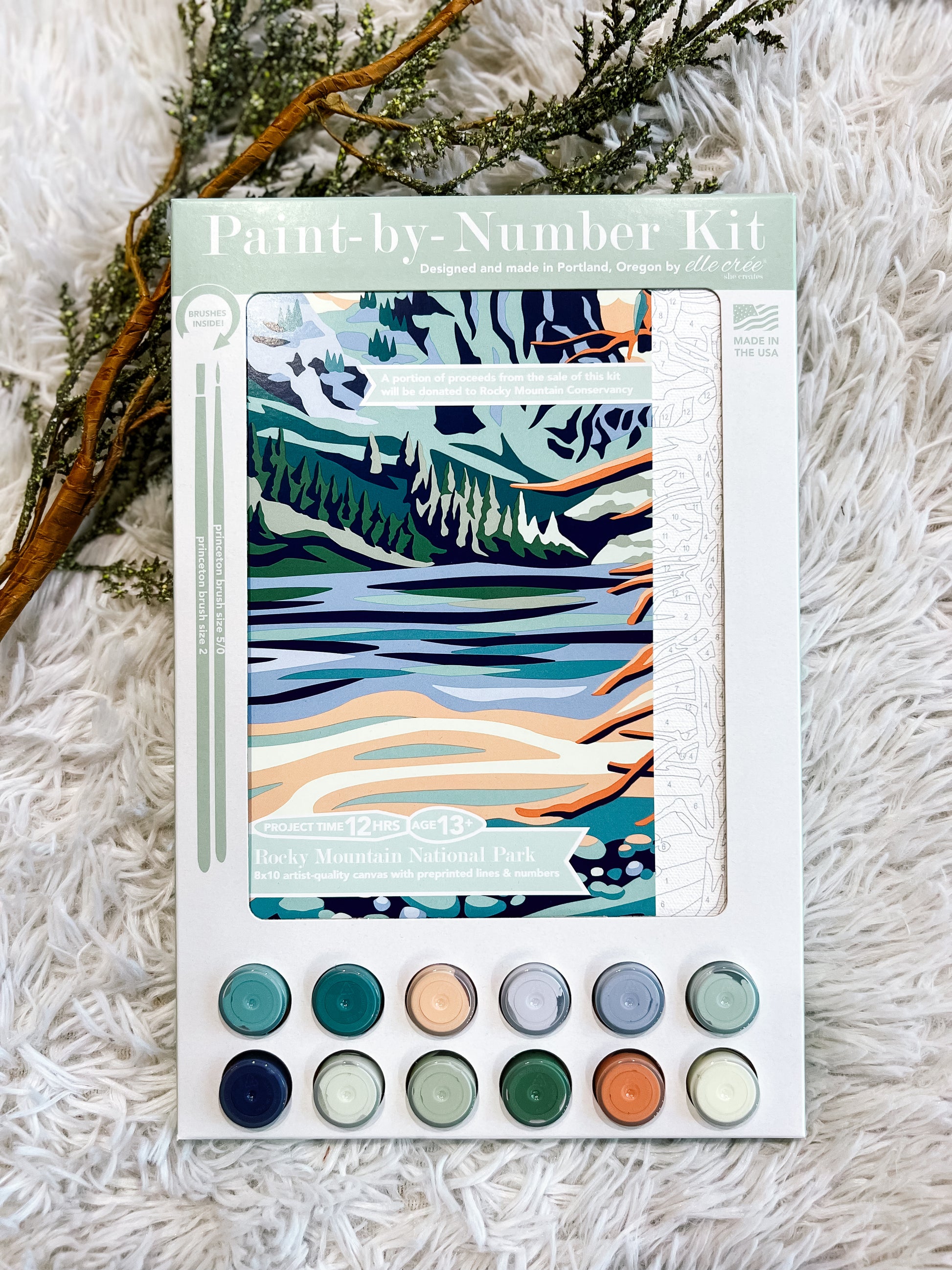 Product Description: The "Rocky Mountain National Park" paint-by-number kit features a view of the jagged spires of Flattop Mountain from the iconic alpine Emerald Lake. A fun project for a cozy night in!