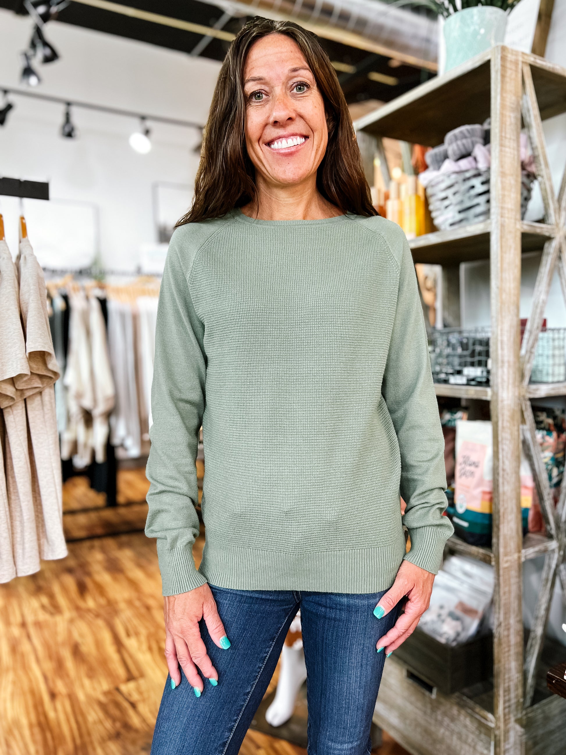 Sage Waffle Sweater