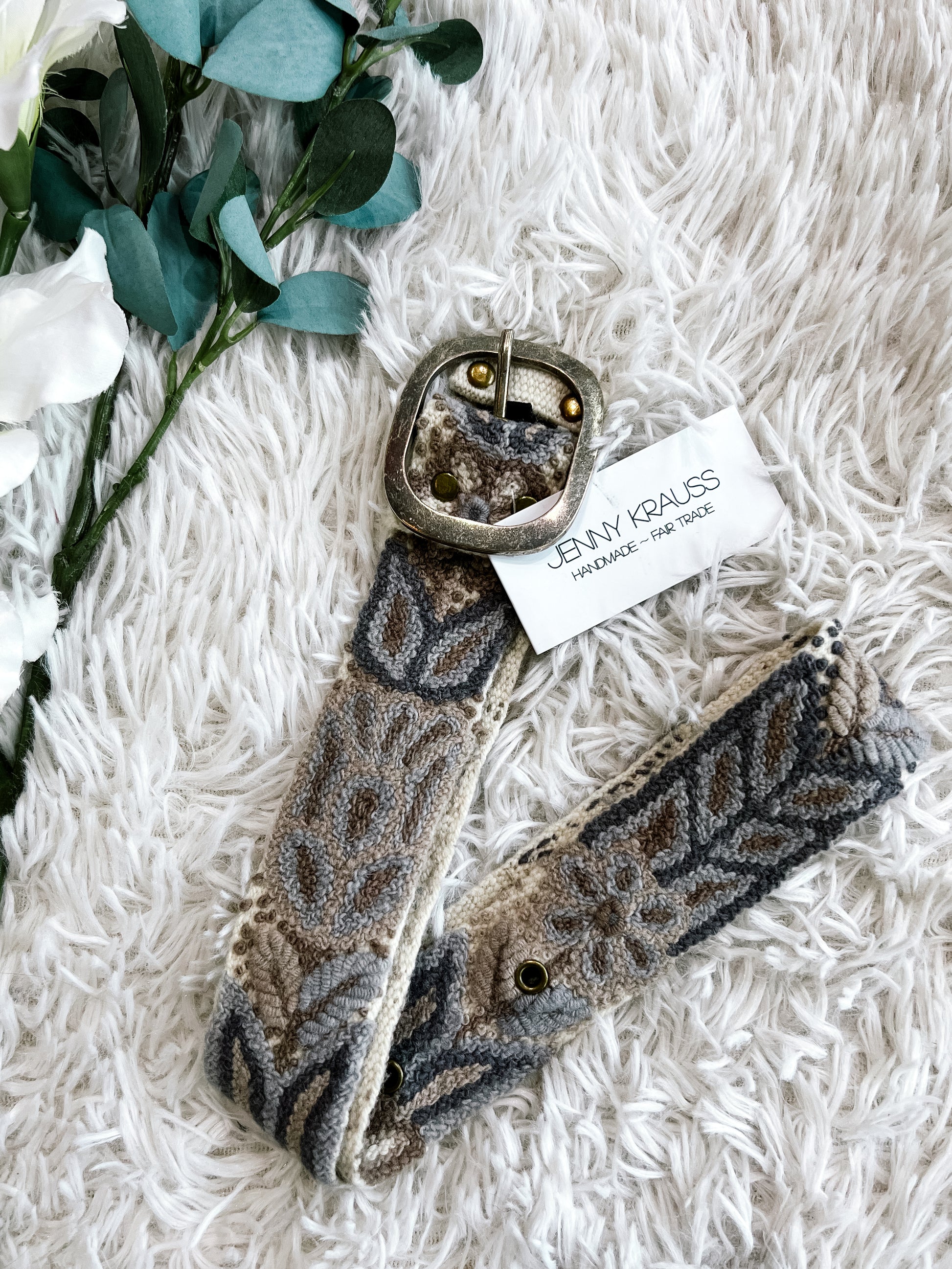 Product Description: Spice up your outfit with this gorgeous embroidered wool belt! It offers a slight stretch that conforms to the body after a few days of wear just like your favorite pair of jeans! Designed to be versatile with 5 sets of holes 2" apart - they can be worn at the hip or at the waist.