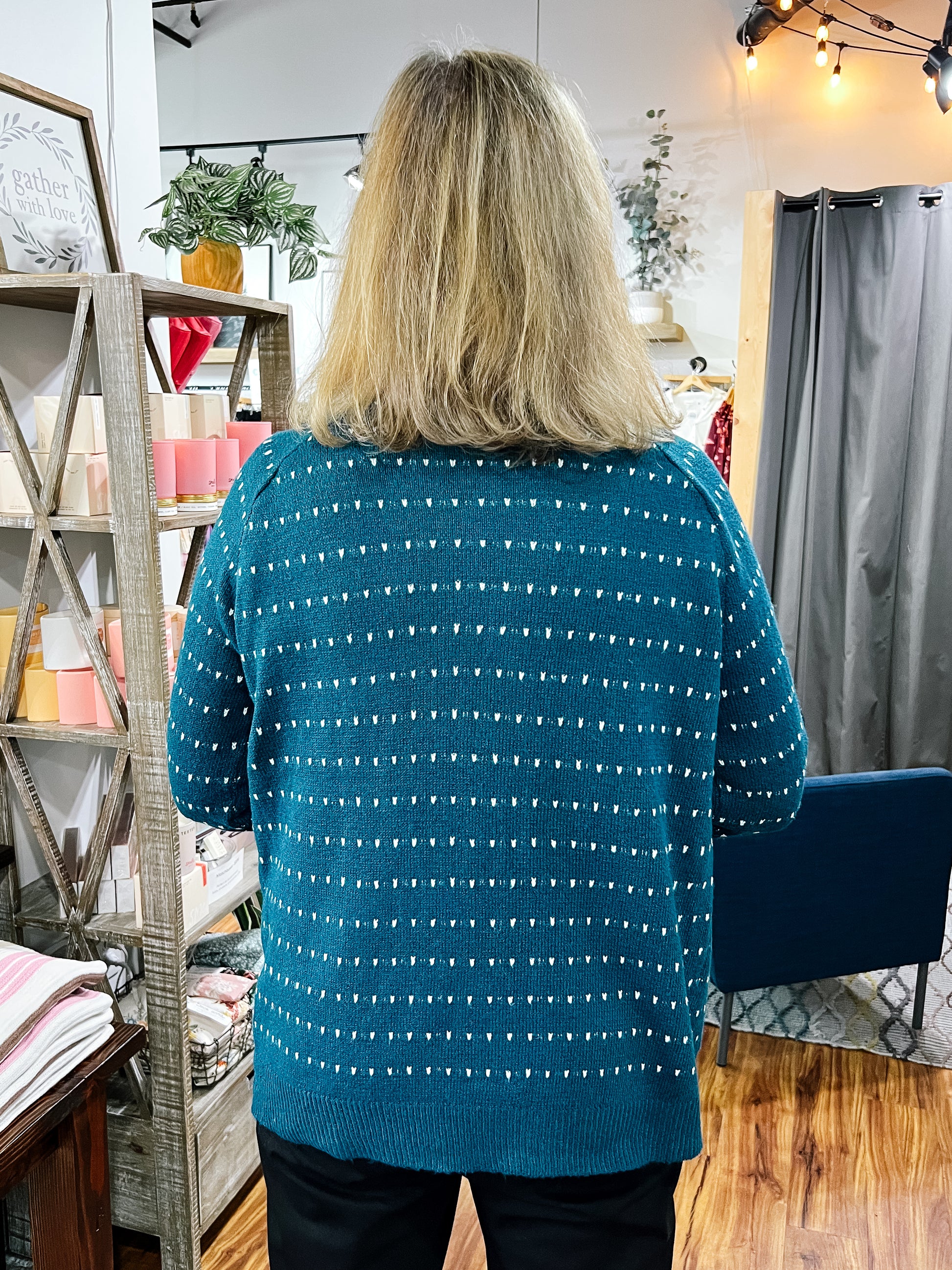 Product Description: A cozy open-front style accented with ivory textured stripes for a touch of interest. Designed with patch front pockets and an easy, relaxed fit, this cardigan layers beautifully over tees, blouses, or lightweight sweaters. Hits just below hips.