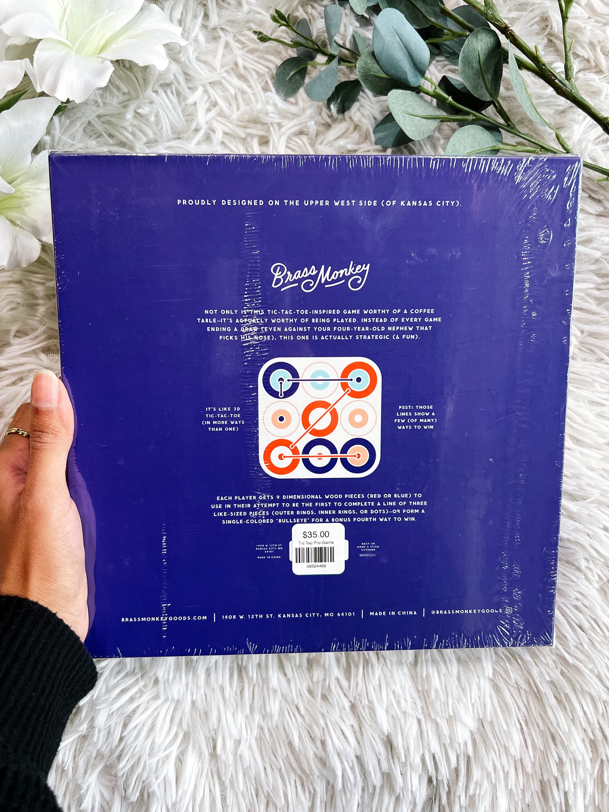 Product Description: Advanced tic-tac-toe anyone? Instead of every match simply ending in a draw, this version is surprisingly strategic (& fun). The goal is simple–be the first player to use their pieces to complete a line of three like-sized circles–or form a single colored 'bullseye' as a sneaky fourth way to win.